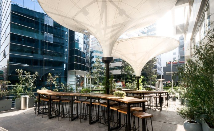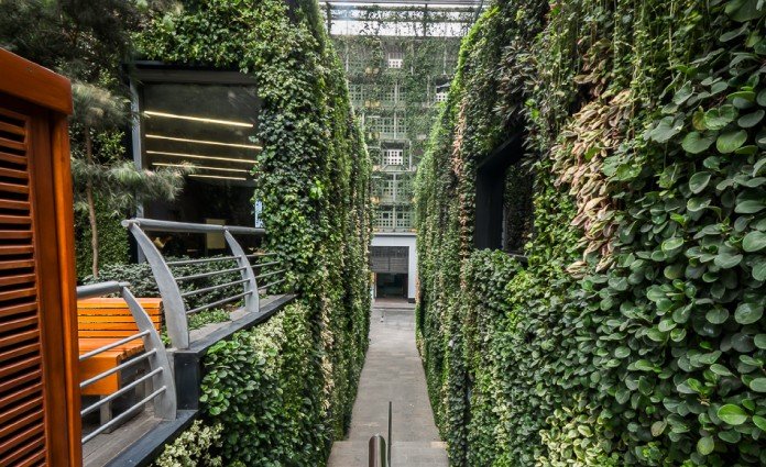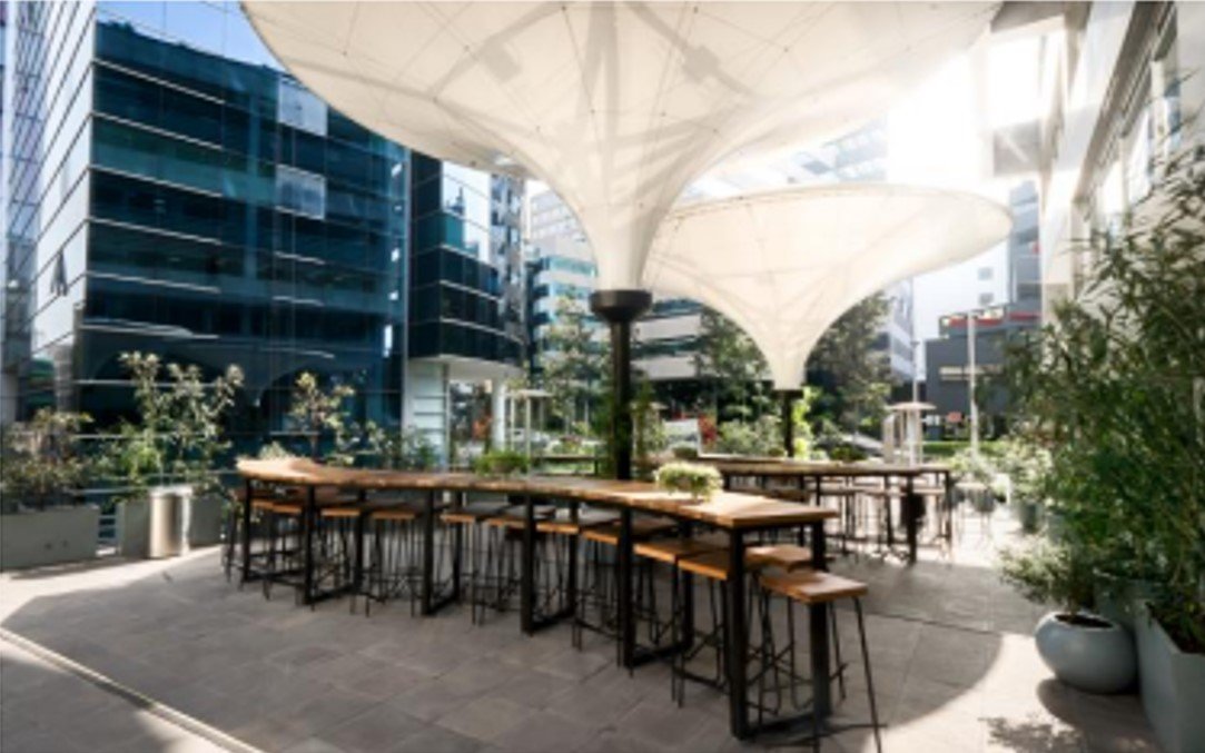 Zonas de Descanso y Espacios de Almuerzo al Aire Libre Más de 4,100 m² de techos verdes y jardines verticales y horizontales