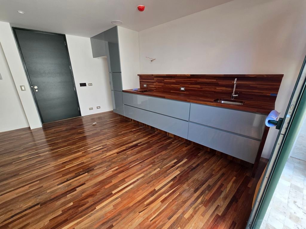 Acabados de primera en todo el departamento. Cocina con encimeras de madera y muebles de poliuretano. Vidrios anti ruido.
